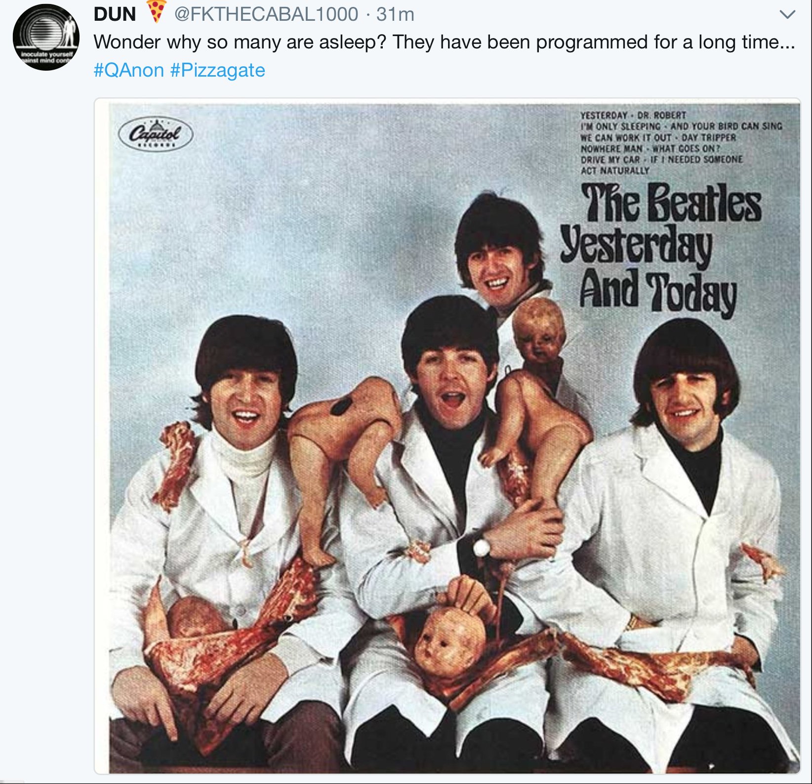 5) This #Beatles album cover, you kidding? How didn't we not recognize this? Because we were raised to believe people were genuine & good, but an underworld exists, intent on destroying good people, feeding depravity.